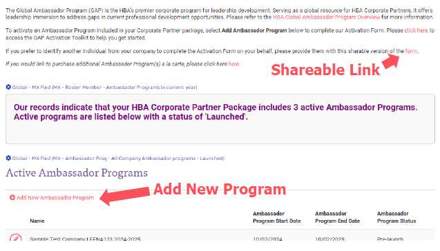 Only designated partnership contacts have access to activatean Ambassador Program. To activate, please visit the HBA Corporate Partner Portal in your HBA profile and select ‘Ambassador Programs’